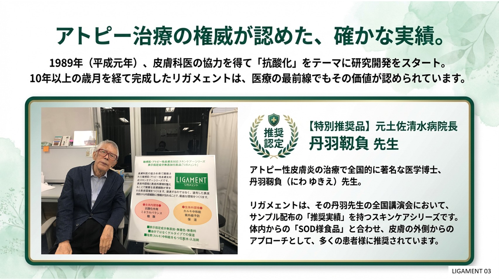 LIGAMENT化粧品は、アトピー肌、敏感肌の方にとくにおススメの1995年販売開始、超ロングセラー無添加低刺激化粧品です。