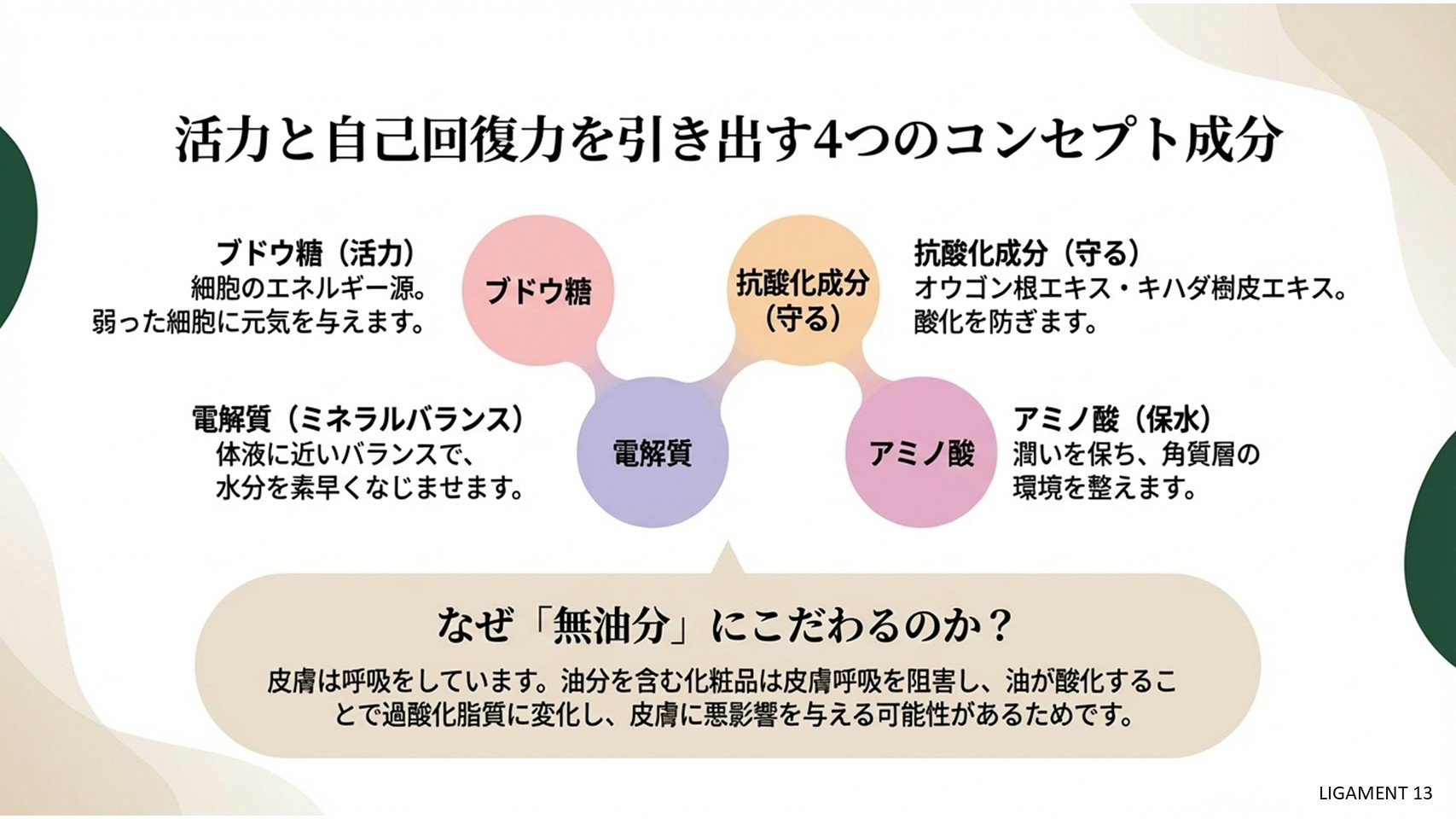 以上の4つがリガメェント化粧品のコンセプト成分です。