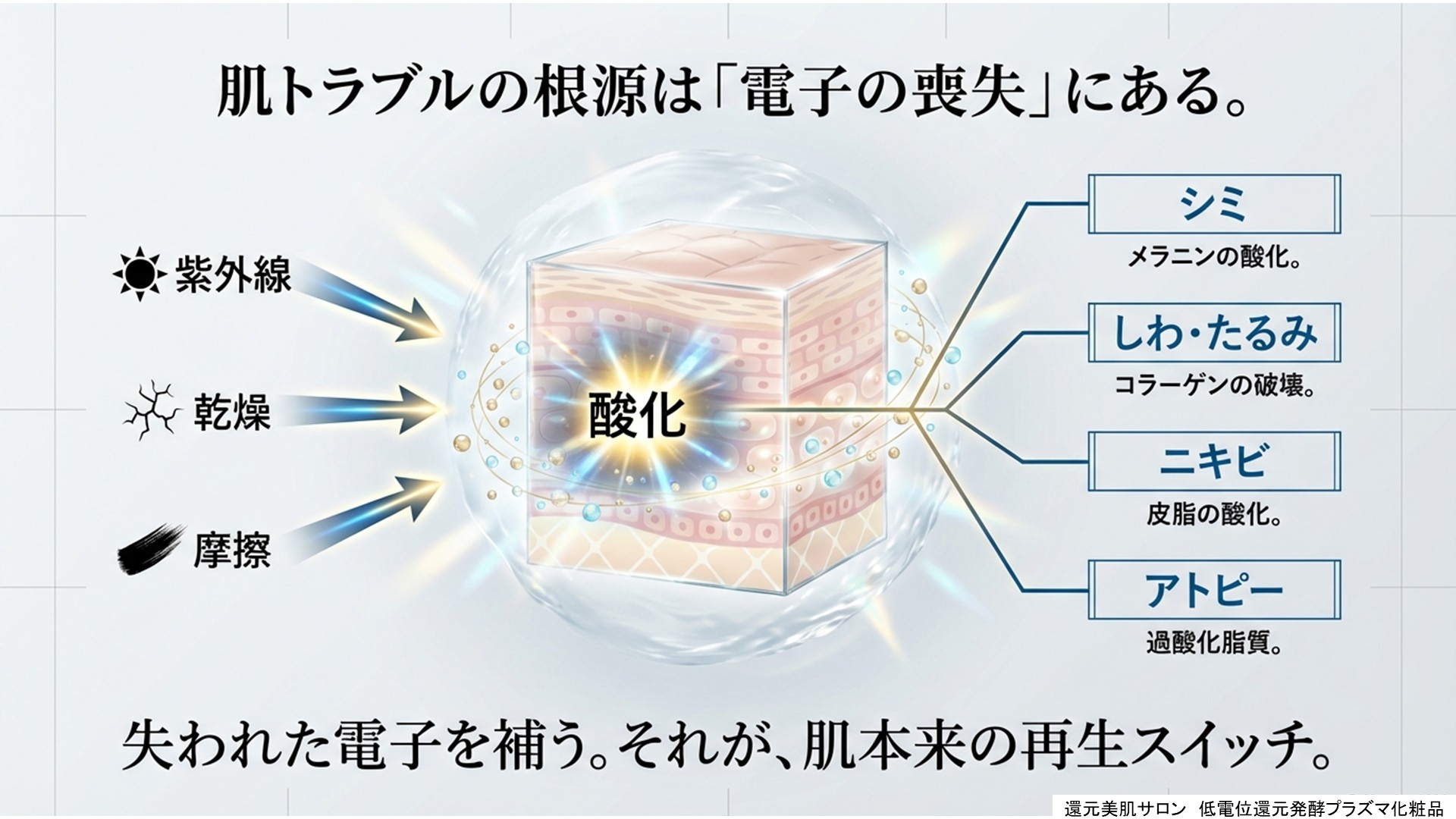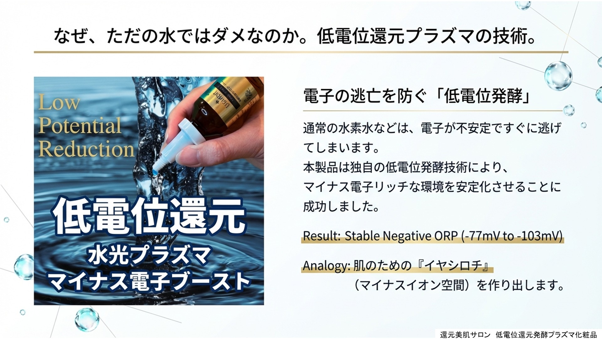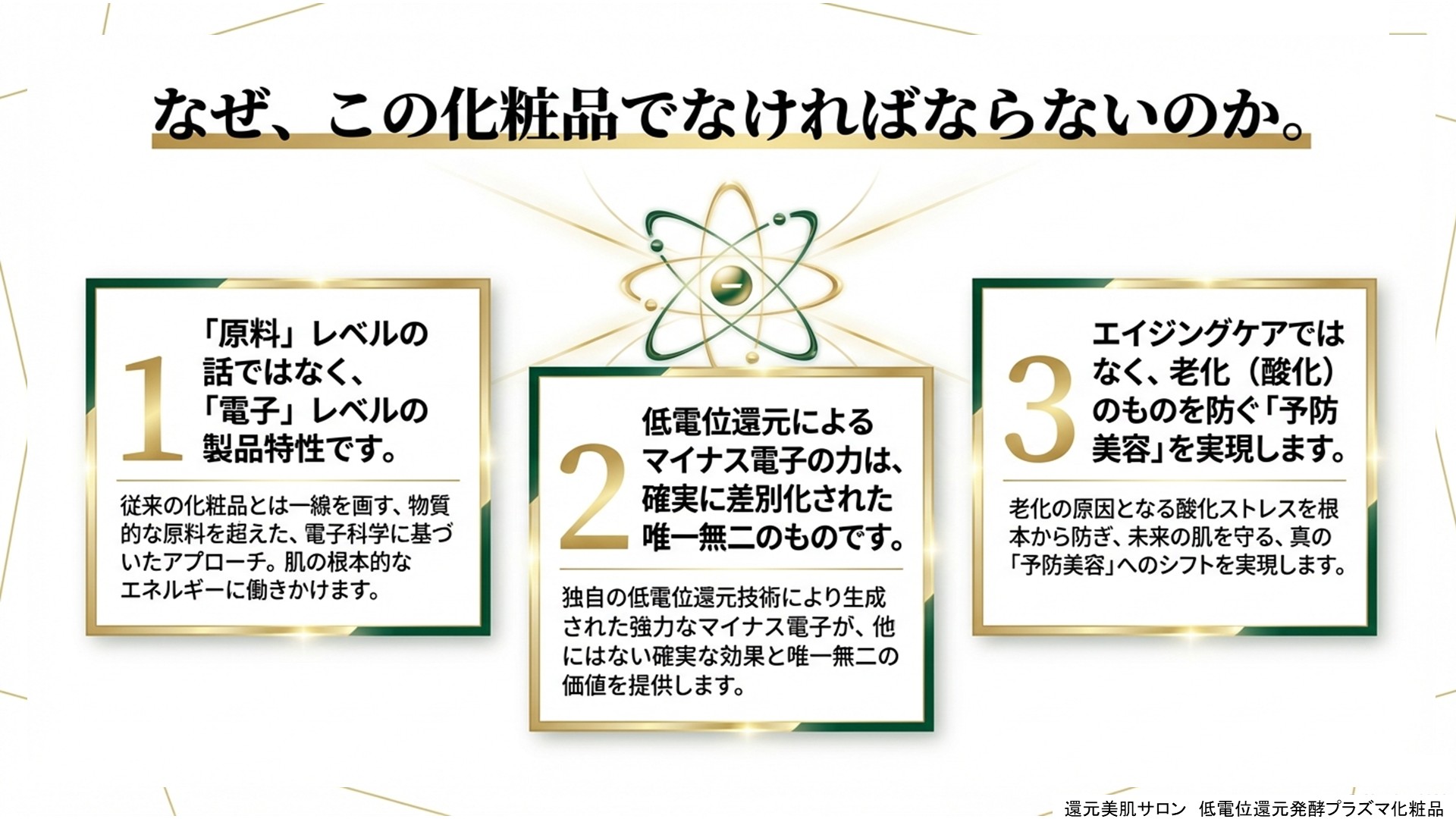 また、老化や肌荒れ、敏感肌、アトピー肌の原因となる活性酸素を除去する体内のSOD(スーパー・オキサイド・ディスムターゼ)酵素と類似の働きをするSOD様食品を製造する技術を生かし、皮膚科医の協力を得ながら皮膚からの酸化、体内の酸化をテーマに10年以上研究し、その成果が多くのお客様に愛される化粧品となりました。