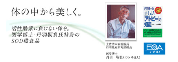 医学博士・丹羽靭負先生は、天然の穀物・食物を特殊製法して食べることで、体内のSOD酵素を強力に助ける抗酸化SOD様食品を開発されました。
